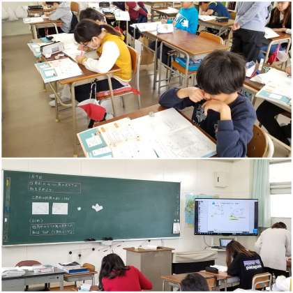 5年生は、三角形の内角の和が180度ということをもとに、四角形の角度を求めています。