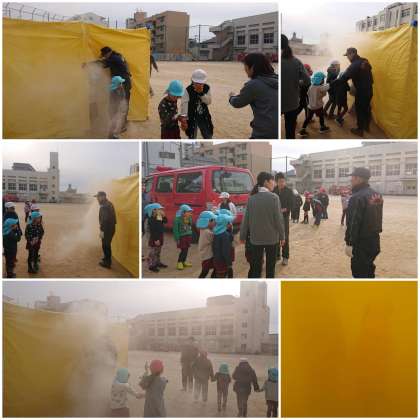 4年生と一緒に、野里幼稚園の園児さんが「煙テント」の体験をしました。