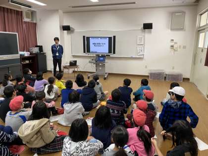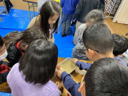 大阪管区気象台の方から、「地震の起こる仕組み」の話を聞かせていただいた後、「液状化」の実験を見せていただきました。