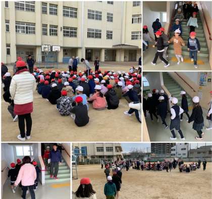 大きな地震を想定した一次避難では、運動場に全校児童が集合しました。