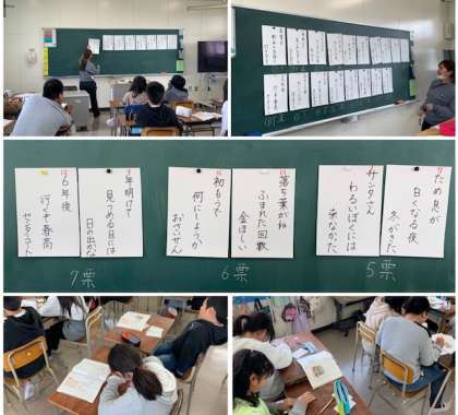 6年2組では、国語で俳句について学習した後、学級で句会を開きました。