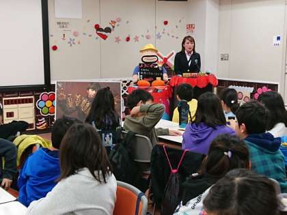 工場内で「きのこの山」を作っている様子を見学した後、工場や製品についてのDVDを見たり、お話を聞いたりして学習しました。