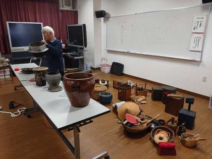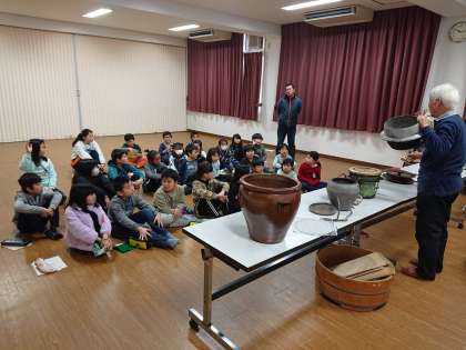 歌島小学校で教頭先生をされていた、粕谷先生に講師になっていただき「昔の道具体験」の学習をしています。