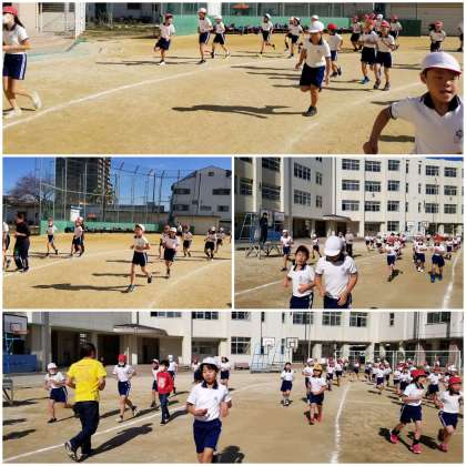 気持ちのよい天気で、子ども達はいつも以上に張り切って走っています。
