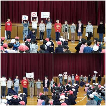 委員会の子ども達が、毎日世話をしている「カメ」について、クイズ形式で紹介しました。
