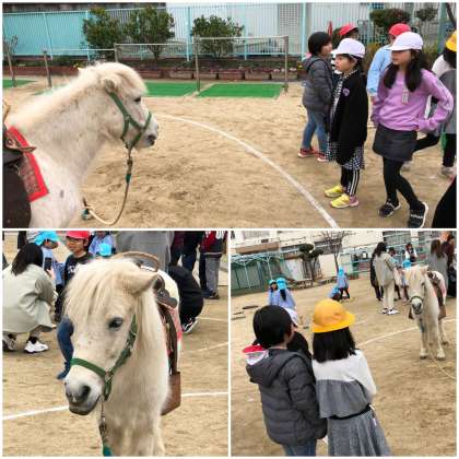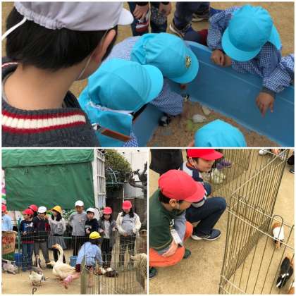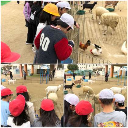 移動動物園が来ている野里幼稚園の園庭へ、本校の児童も遊びに行かせてもらいました。