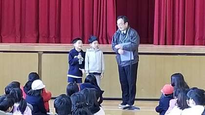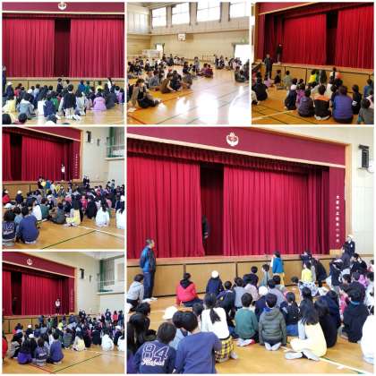 子ども達、真剣に通り過ぎる人の姿を追いかけています。