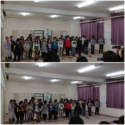 音楽の時間に歌ったり演奏したりした曲を発表した後は、家族と一緒に百人一首を楽しみました。