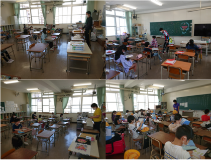 それぞれの教室で、担任の先生と顔を合わせ、楽しく話をしたり、運動場で遊んだりしました。