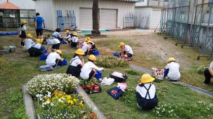 2年生は、枝豆、ミニトマト、おくら、なすびの中から自分が選んで、鉢植えをしました。