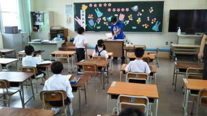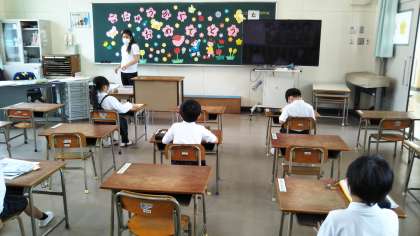 1年生は、初めて教室ですごしました。学校での生活についてがんばって少しずつ学んでいます。
