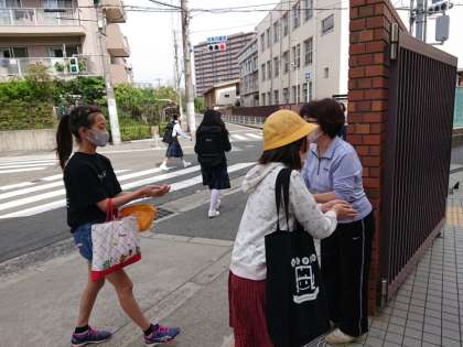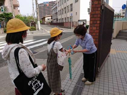 登校してきた児童一人一人に当番の教員が「熱がないか」と声をかけています。