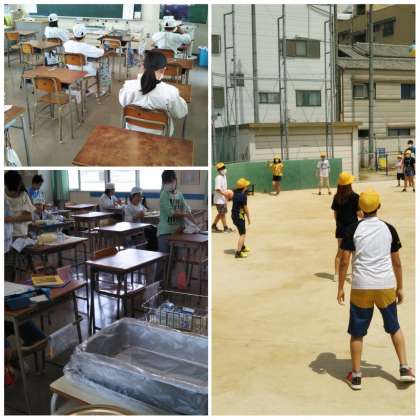 給食を食べ終わるのが早い6年生。昼休みに外で遊んだあとは1年生の給食を返しに行ってあげるなど高学年らしく過ごしています。