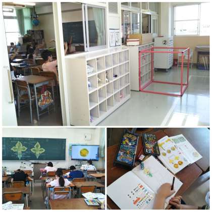 5年生の教室の前に大きな箱の形をしたものが置かれていました。教室では算数の授業が…。何に使うのでしょうか?理科ではカボチャのめばなとおばなを特徴を捉えて描くことができました。