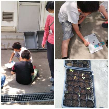 3年生が昨日、学習園でマリーゴールドやホウセンカの観察をしていました。大きくなるのが楽しみですね。