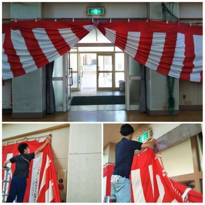 講堂では、30日に行う入学式に向けての準備を行いました。