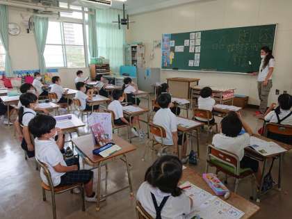 1組では「なんばんめ」についてみんなで考えていました。発言しようと手を挙げている姿勢が素晴らしいですね。