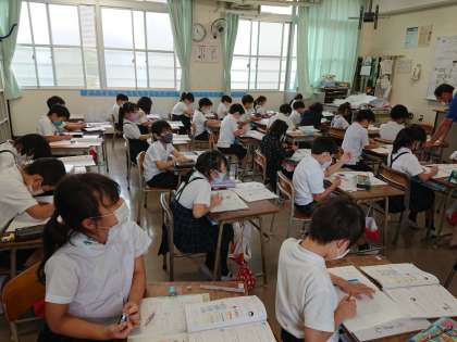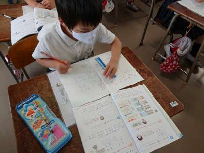 算数の学習の終わりに、今日の勉強の「ふりかえり」をノートに書いています。