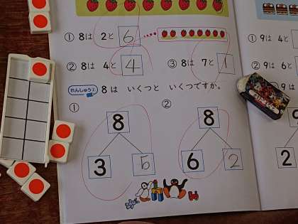 「8」がいくつといくつに分けることができるか、勉強しています。