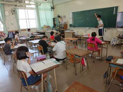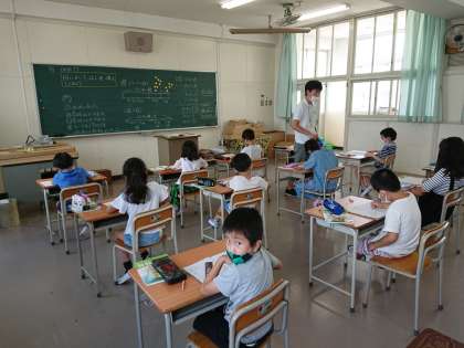 今日も人数を2分割して、算数の学習をしています。