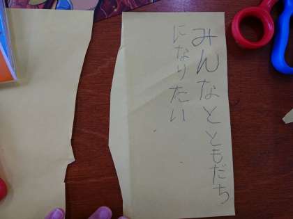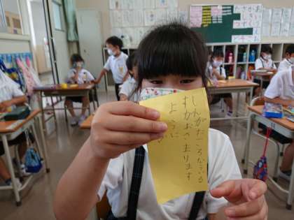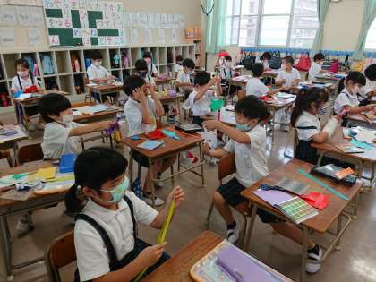1年生たちが、七夕の飾りと短冊を作っていました。
