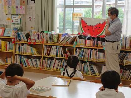 図書館支援員の方が、絵本の読み聞かせをしてくださいました。