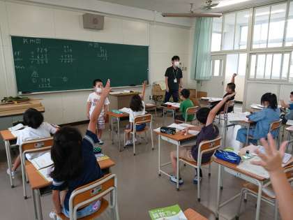 「次の人?」と聞くと、たくさんの子どもたちの手が上がります。