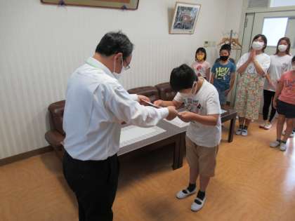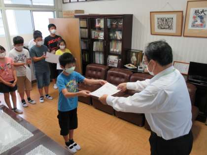 4・5・6年生各クラスの代表委員会の人たちと、各委員会の委員長が、校長室で認証状をもらいました。