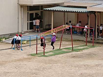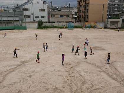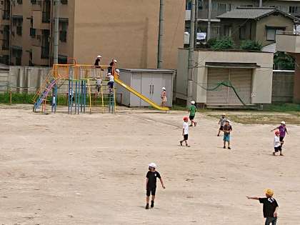子どもたちが外遊びをしています。