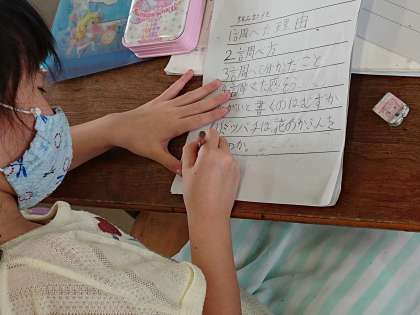 国語科では、身の回りのことの中から知りたいことについて調べ、レポートにまとめる学習をしています。