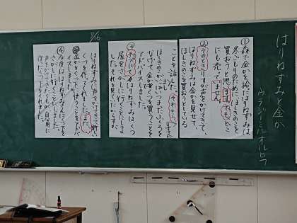 国語科の学習で、「はりねずみと金貨」の物語を読んで、あらすじをまとめる学習をしています。