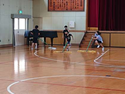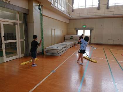 広い体育館。少ない人数で時間内に終わることができるかな。