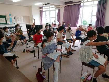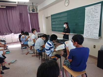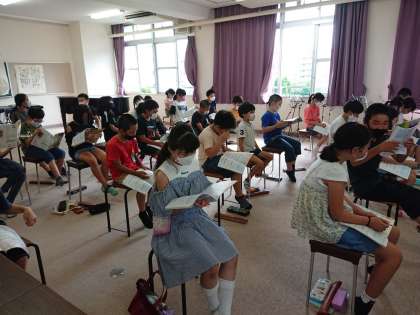 「BELIEVE(ビリーヴ)」の曲の中で、どこでブレス(息つぎ)をすればよいのか、みんなで意見を出し合っています。