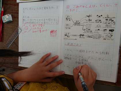 今日は、びん、かん、ペットボトルなどの資源ごみがどのように処理されるのか調べていました。