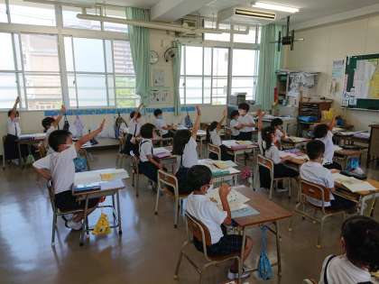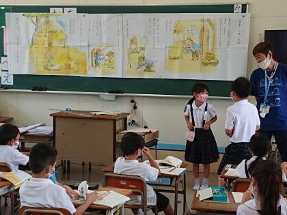 登場人物になりきって、どのような動きをすればお話が伝わるか考えて、動作をしています。