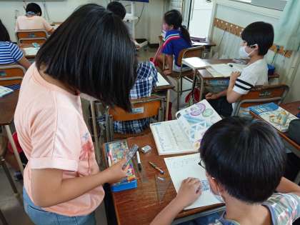 四角形の4つの角の和がいったい何度になるのか、方法を考えてから、実際に分度器で測って確かめています。