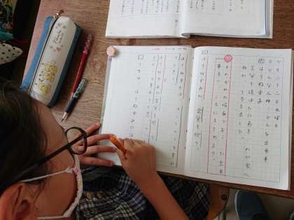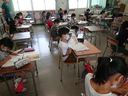 国語科では、「はりねずみと金貨」を読んで、それぞれの場面で起こったできごとを1、2文に短くまとめています。