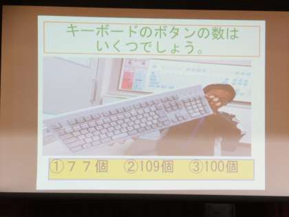 パソコンクラブの発表では、子どもたちがクラブ活動の時間に作ったクイズを出題してくれました。間違い探しなど工夫が凝らされおり、大盛り上がりでした。