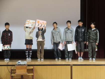 飼育栽培員会の発表では、委員会の活動をクイズを取り入れ紹介してくれました。こちらもカメの名前など難問も多く、こどもたちは頭を悩ませていました。
