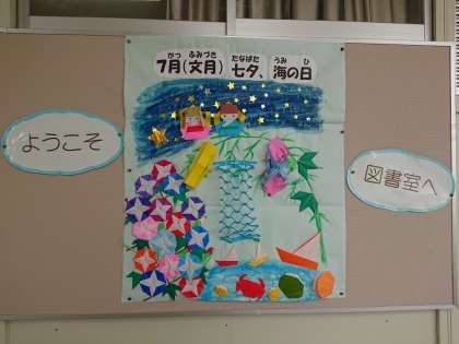 図書室の前には、「夏」を感じさせる本を集めて置いています。