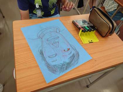 子どもたちは慎重に自画像を彫っていきます。