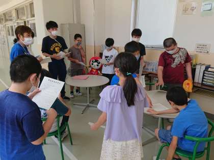 飼育栽培委員会が、夏休みの当番の打合せをしています。