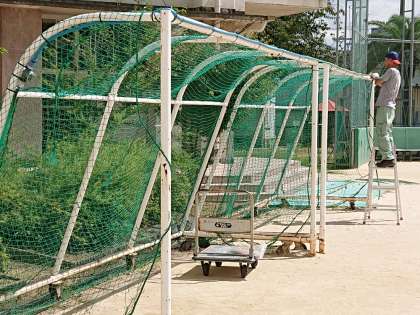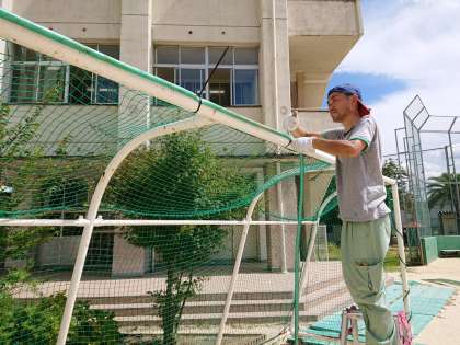 体育の授業時間など、熱中症対策に役に立てば・・・と、管理作業員が手作りのミストを設置しています。