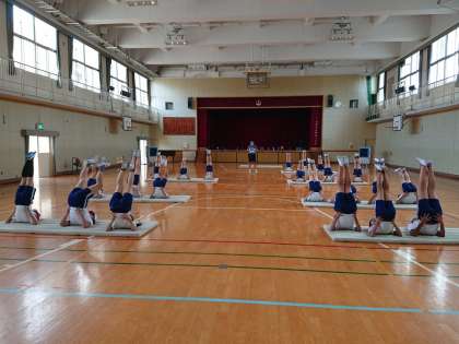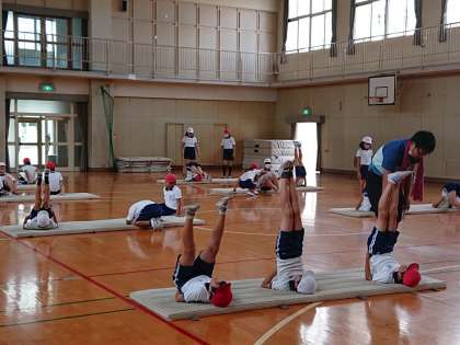 昨日は、5年生が肩倒立の練習をしていましたが、今日は6年生が練習していました。