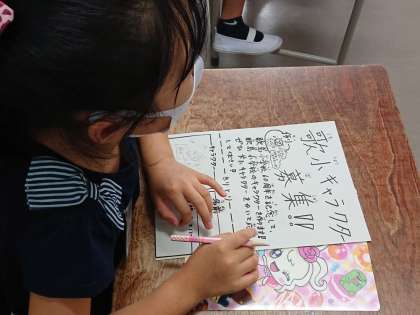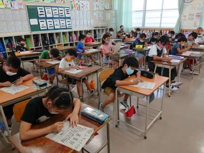 昨日は1年生が「歌島小のキャラクター」を考えていましたが、今日は3年生がキャラクターを一生懸命考えていました。