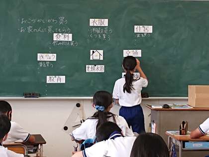 家庭科では、「生活を支えるお金と物」の学習をしています。