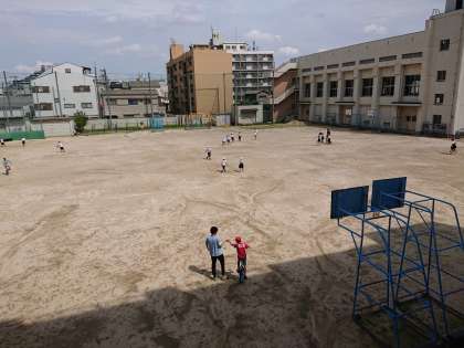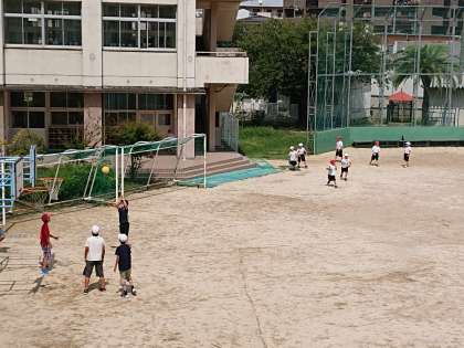 雨が上がり、たくさんの子どもたちが運動場に出てきました。