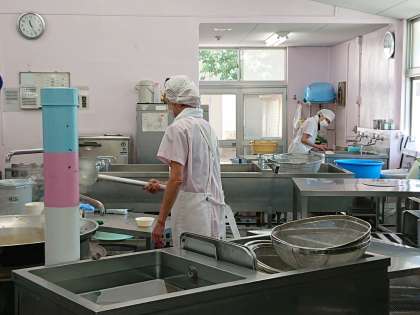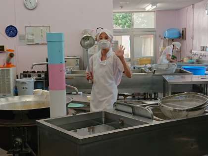 豚肉がやわらかくなるよう、給食調理員がひと手間をかけて調理しているそうです。