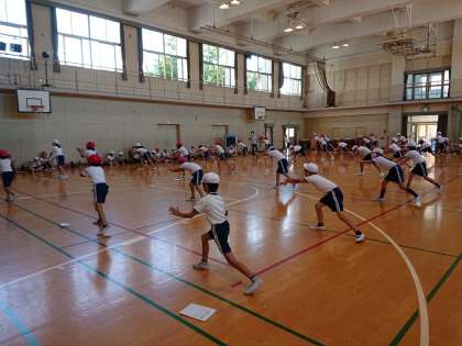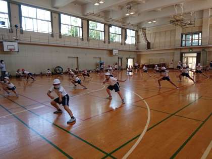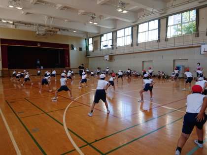 5・6年生が団体演技の練習をしています。