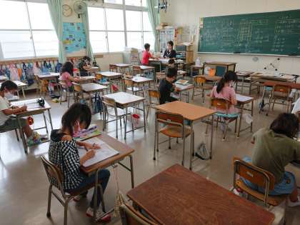 子どもたちは、位が1つ下がり、一の位の0をとった数になることに気づきました。